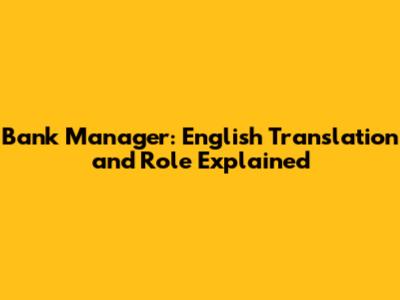 Bank Manager: English Translation And Role Explained