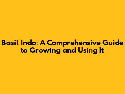 Basil Indo: A Comprehensive Guide To Growing And Using It