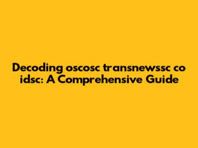 Decoding Oscosc Transnewssc Co Idsc: A Comprehensive Guide