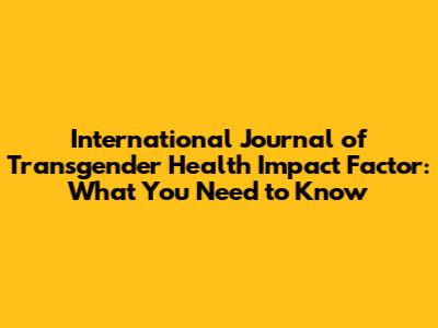 Hey guys! Ever wondered about the International Journal of Transgender Health (IJTH) and its impact factor? If you're involved in transgender health, whether as a healthcare provider, researcher, advocate, or just someone keen on staying informed, understanding the influence and credibility of academic journals like IJTH is super important. Let's dive into what the impact factor is all about, why it matters, and how it reflects on IJTH.