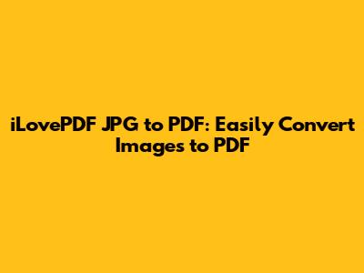 ILovePDF JPG To PDF: Easily Convert Images To PDF