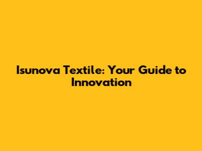 Isunova Textile: Your Guide To Innovation