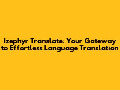 Izephyr Translate: Your Guide To Seamless Language Translation