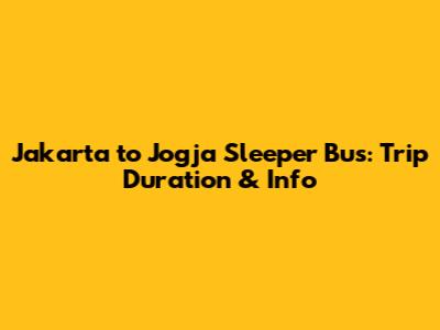 Jakarta To Jogja Sleeper Bus: Trip Duration & Info