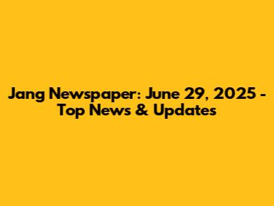 Jang Newspaper: June 29, 2025 - Top News & Updates