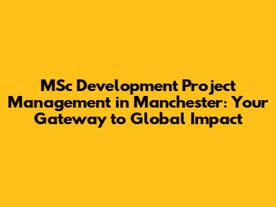 Hey everyone! So, you're thinking about diving into the world of development projects, specifically looking at a Master of Science (MSc) in Management and Implementation of Development Projects in Manchester? That’s awesome! This is a seriously impactful field, guys, and getting the right education can set you up for a truly rewarding career. Manchester is a fantastic place to be for this kind of study, with a vibrant academic scene and a history of global engagement. Let’s break down why this specific MSc is such a big deal and what you can expect from pursuing it in a city like Manchester.