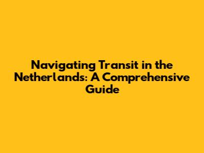 Navigating Transit In The Netherlands: A Comprehensive Guide