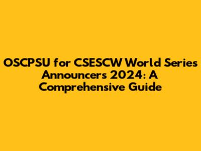Hey everyone! Are you ready for the CSESCW World Series 2024? It's going to be epic, right? And what makes any great sporting event even better? That's right, the announcers! This guide dives into how OSCPSU can be a game-changer for those announcing the action. We'll explore what OSCPSU is, why it's vital for the CSESCW World Series, and how it empowers announcers to deliver top-notch commentary. Get ready to level up your announcing game, guys!