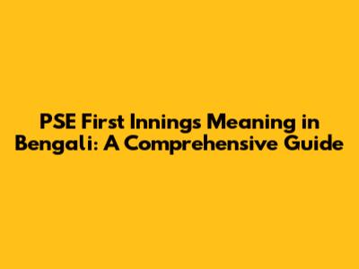 PSE First Innings Meaning In Bengali: A Comprehensive Guide