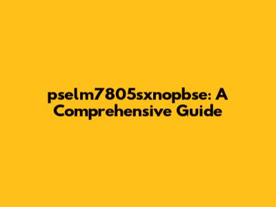 Pselm7805sxnopbse: A Comprehensive Guide