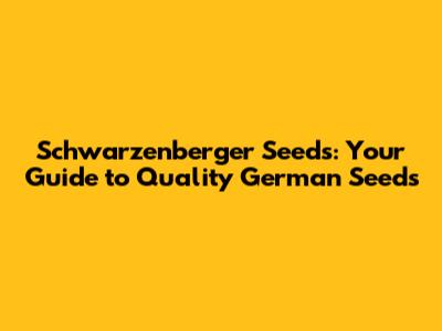 What Makes Schwarzenberger Seeds Stand Out?