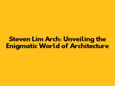Steven Lim Arch: The Ultimate Guide