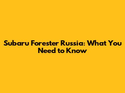 Subaru Forester Russia: What You Need To Know