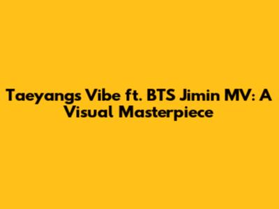 Taeyang's Vibe Ft. BTS Jimin MV: A Visual Masterpiece