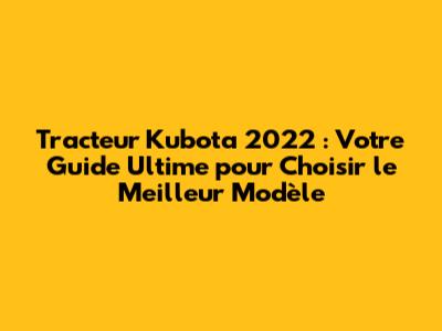 - Combien coûte un tracteur Kubota 2022 ? Les prix varient considérablement en fonction de la taille, de la puissance et des options. Il est préférable de demander un devis personnalisé à un concessionnaire.