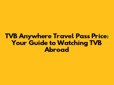 TVB Anywhere Travel Pass: Pricing & How To Watch Abroad