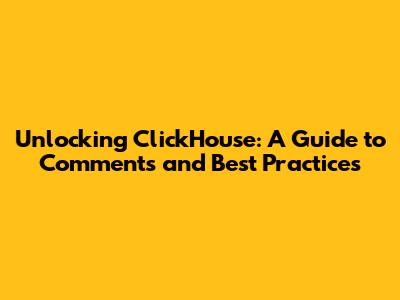 Unlocking ClickHouse: A Guide To Comments And Best Practices