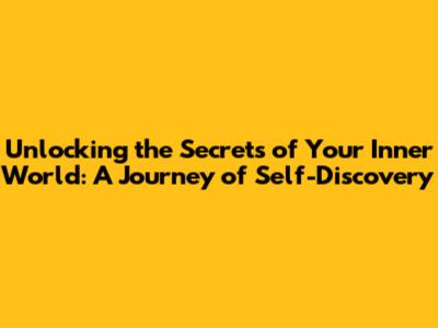 Unlocking The Secrets Of Your Inner World: A Journey Of Self-Discovery