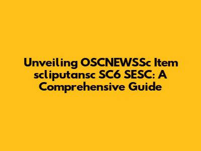 Unveiling OSCNEWSSc Item Scliputansc SC6 SESC: A Comprehensive Guide