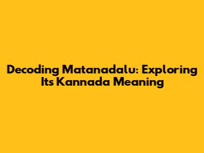 Unveiling The Kannada Meaning Of 'Matanadalu'