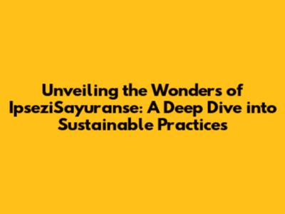 Unveiling The Wonders Of IpseziSayuranse