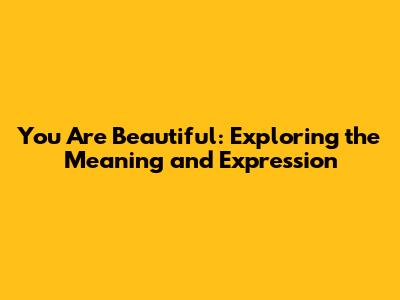 You Are Beautiful: Exploring The Meaning And Expression
